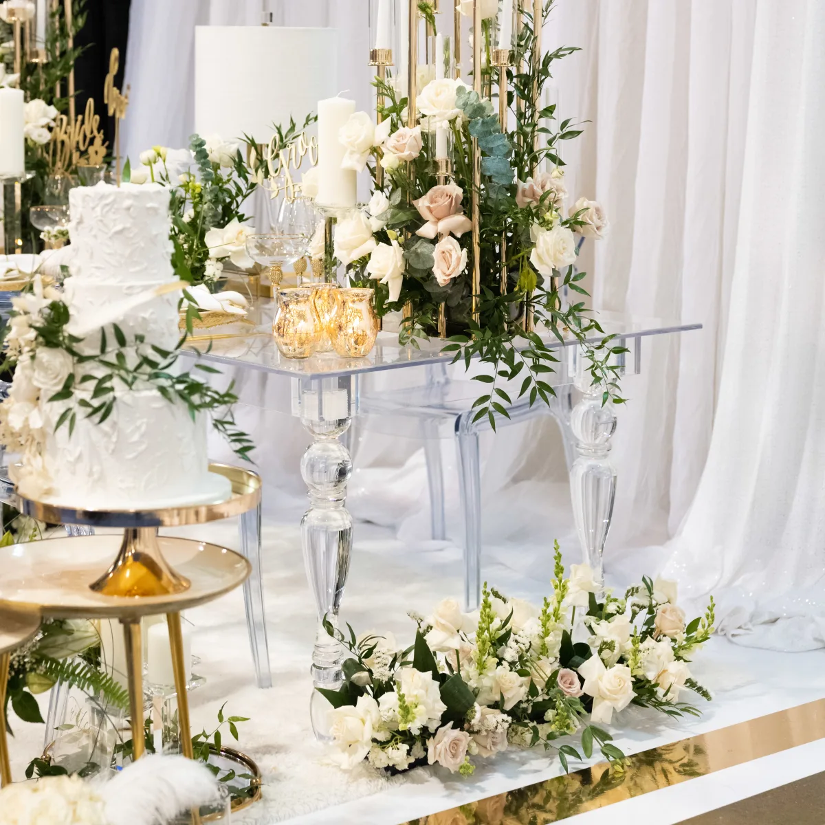 Make a statement at your reception with our exquisite head table decor. Our skilled designers will adorn your head table with stunning floral arrangements, elegant linens, and dazzling accents, creating a focal point that exudes sophistication and charm. Whether you envision a lush floral runner cascading down the table or a minimalist display with sleek candlelight, our team will bring your vision to life with impeccable attention to detail. Elevate your wedding reception with a head table that is as unforgettable as the love you share.