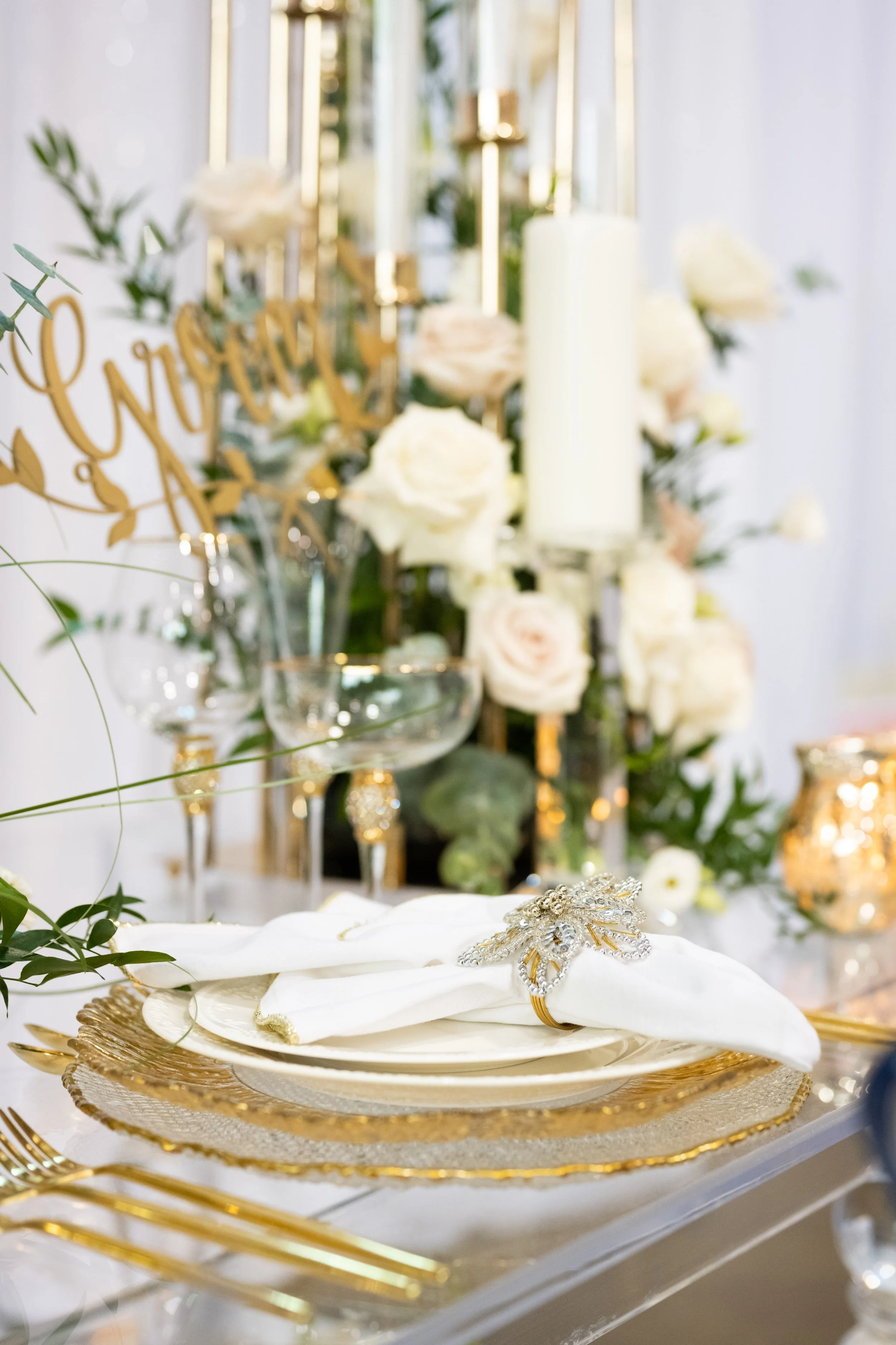 Transform your wedding reception into a visual masterpiece with our enchanting tablescapes. From luxurious linens to exquisite tableware and stunning floral arrangements, every detail is meticulously curated to create a captivating ambiance that reflects your personal style and vision. Whether you envision a romantic garden affair or a sleek modern celebration, our talented team will design a tablescape that sets the perfect tone for your unforgettable event.